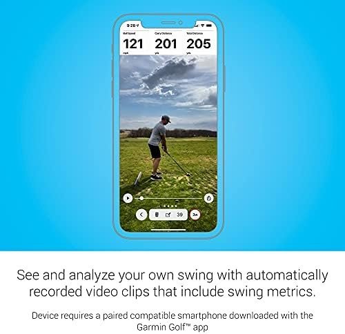 • See and analyze your own swing with automatically recorded video clips that include the metrics of that swing when paired with a compatible smartphone with the Garmin Golf app
